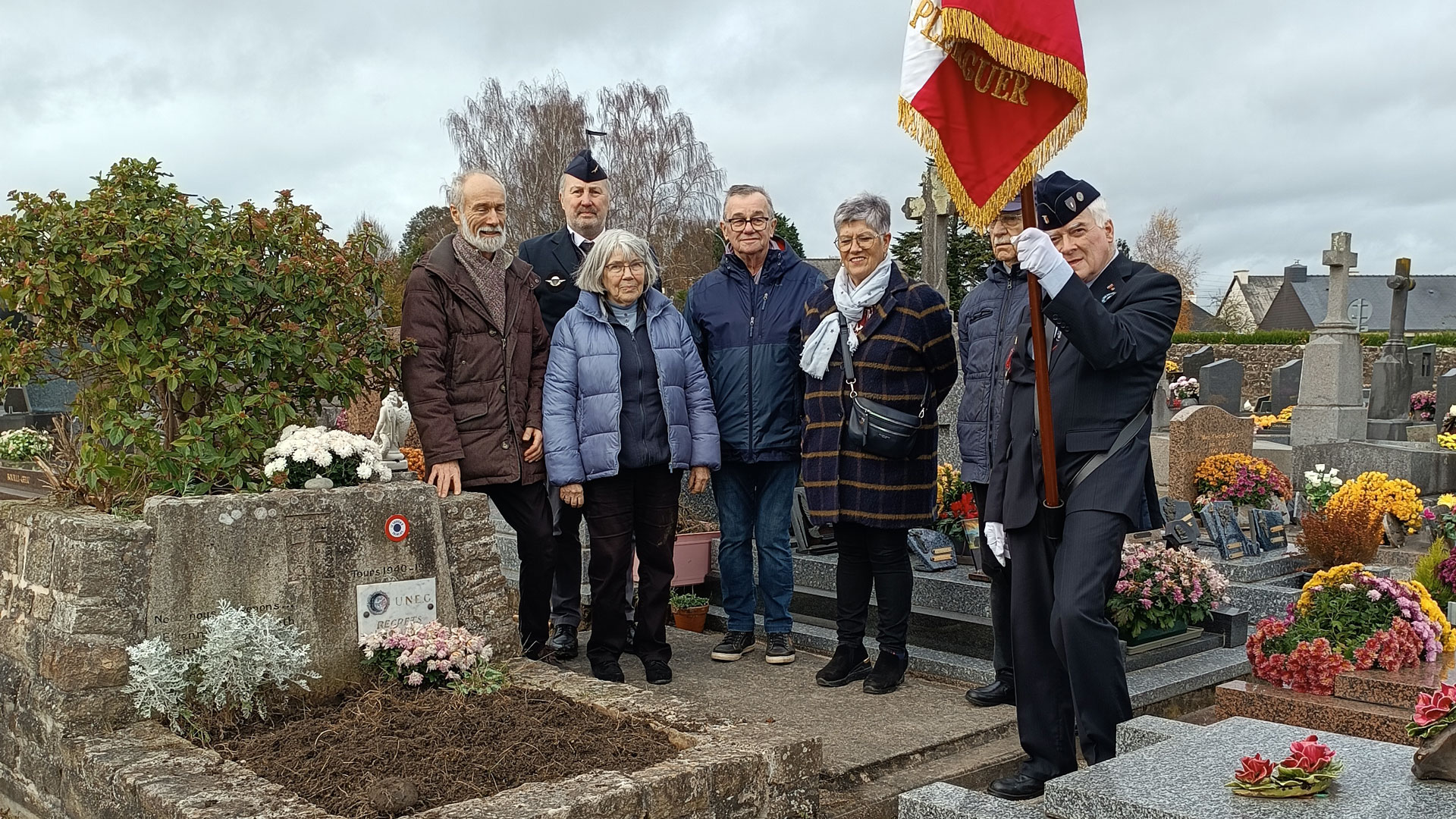 Ce jeudi 27 novembre 2025, une délégation du Comité du Souvenir Français Plerguer – Miniac-Morvan et de l’UNC Miniac-Morvan composée du Président Philippe Gouesbier, Maître de Cérémonie, du Président Patrick Legueret en tant que Porte-Drapeau, d’Isabelle Feron photographe, de Gisèle Thieulant adjointe au Maire représentant la municipalité, de Monsieur Jean-Pierre Fantou, de M. et Mme Deshayes, de la policière municipale, est allée rendre un hommage devant 2 tombes du cimetière de Miniac-Morvan.